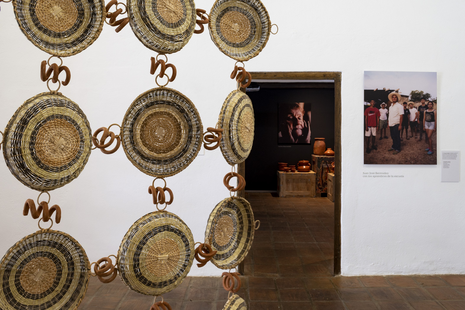 El pan de leche espera por ti es el título de esta obra en la que confluyen la cestería y el barro. La misma se configura a través de una cuadrícula que se construye a partir de 36 maras o especie de bandejas que elaboran las tejedoras de la región con diversos tipos de fibra (bejuco de lata blanca y negra, guaraguao, cuchape, estriadas de copey, cuchivanos y palos de madrina). La función primordial de las marras es contener y exhibir el pan, pero la artista trasmuta el rol originario del objeto para crear un tapiz, especie de cortinaje o estor colgante uniendo las cestas con asas o engarces de barro. La convivencia de diversos materiales y grosores genera una serie de transparencias y texturas que se multiplican, producto de la reiteración como mecanismo compositivo. El resultado es una composición con potentes ecos contemporáneos en el cual no se interviene la configuración del objeto, pero si se trasmuta su función originaria.